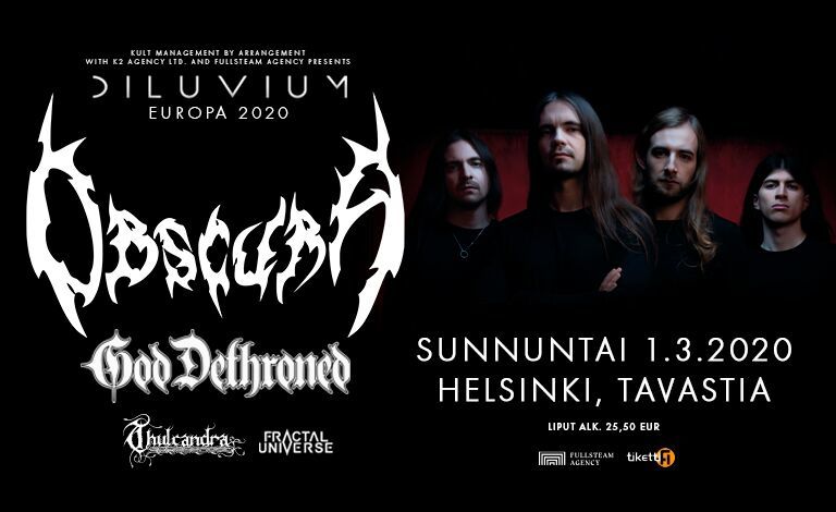 Teknistä ja progressiivista death metallia soittava saksalaisbändi Obscura tuo ensi keväänä johtamansa neljän bändin yhteiskiertueen Suomeen. Tavastialla 1. maaliskuuta toteutuvan tapahtuman muut esiintyjät ovat hollantilainen extreme metal -yhtye God Dethroned, saksalainen black metal -bändi Thulcandra sekä ranskalainen death metal -kokoonpano Fractal Universe.