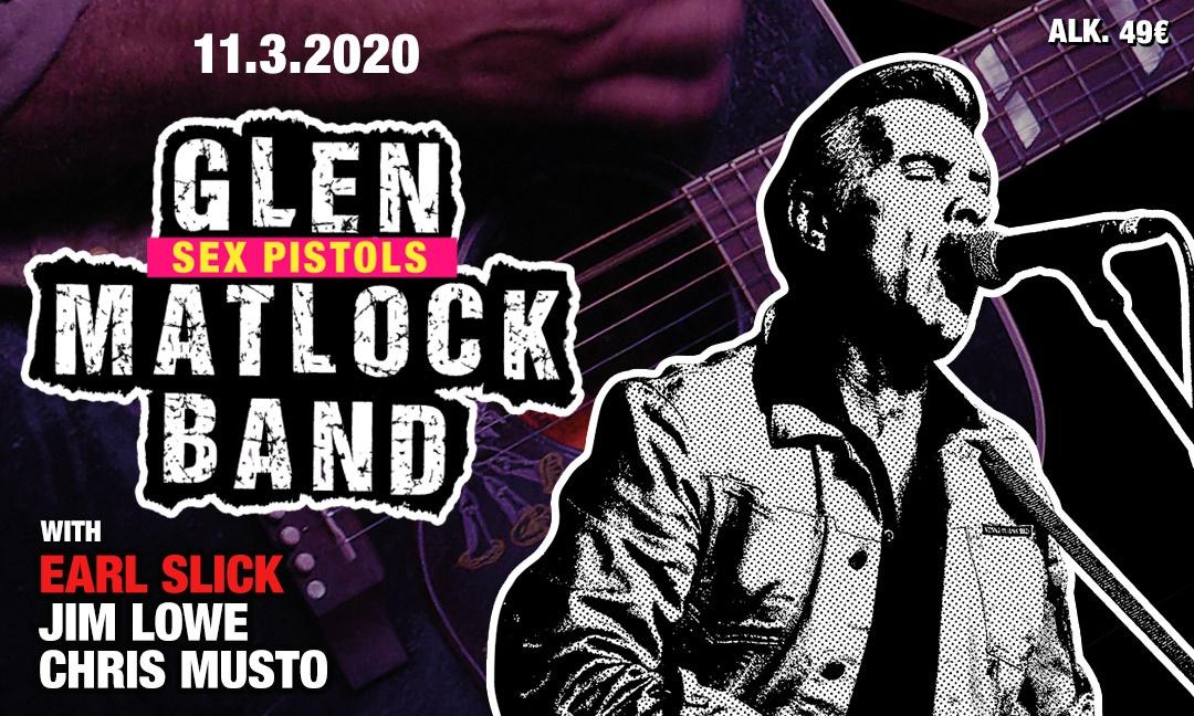 Punk rock -pioneeri ja legendaarisen Sex Pistols -yhtyeen päälauluntekijä Glen Matlock saapuu Suomeen! Glen Matlock Band kiertää alkuvuodesta 2020 Eurooppaa ja saapuu Suomeen konsertoiden Savoy-teatterissa Helsingissä 11. maaliskuuta. Mukana kiertueella on erikoisvieraana kitaristi Earl Slick, joka on niin ikään tuttu yhteistyöstään suurten rocklegendojen kanssa.