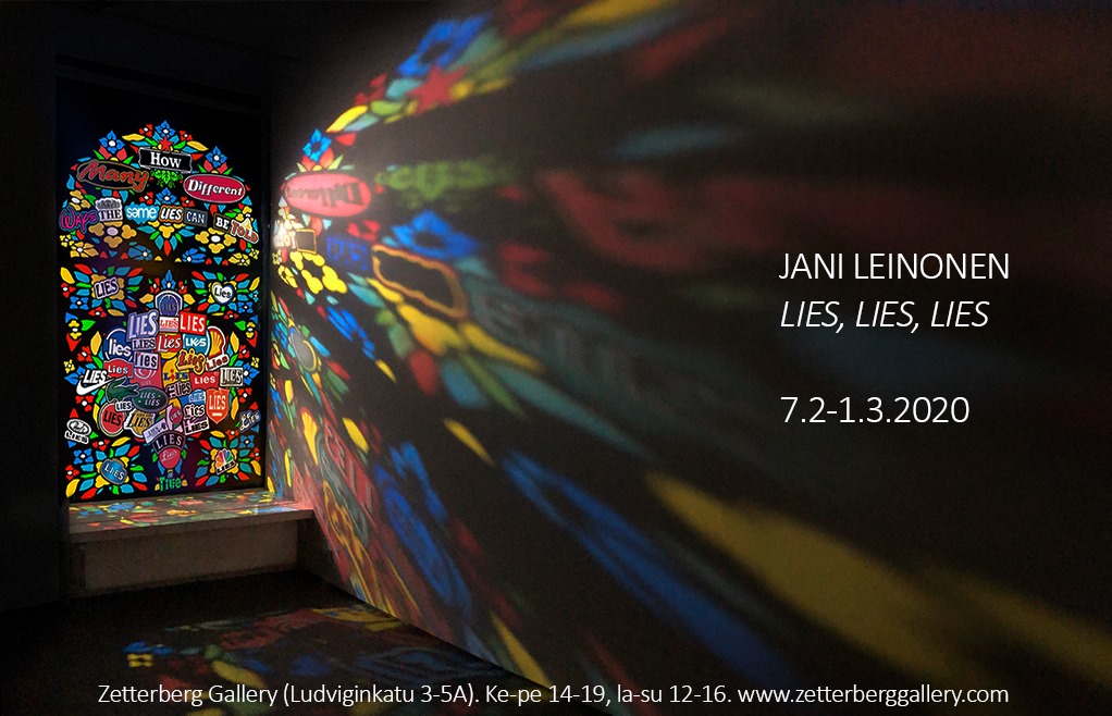 Zetterberg Gallery is proud to present Jani Leinonen's long-awaited stained glass works for the first time in Finland. With the exhibition Lies, Lies, Lies, Leinonen transforms the gallery into a shrine of light, color, and reflection.