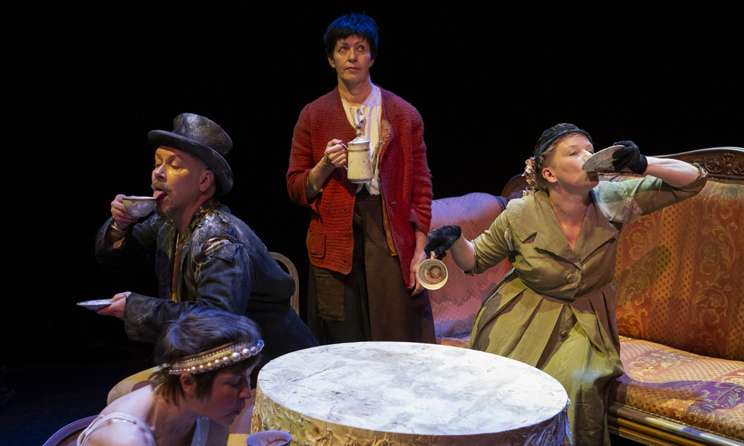 Juhlat on fyysistä teatteria ja tanssiteatteria yhdistelevä mustan humoristinen esitys.