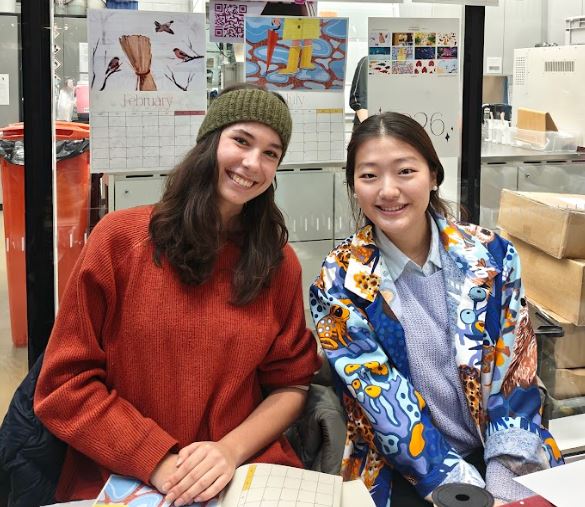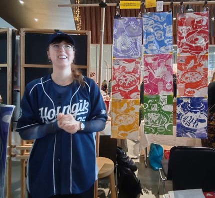 Nuoret opiskeljat olivat tehneet kuvituksia, digitaidetta, kortteja ja yhteisen kalenterin myyjäisiin.