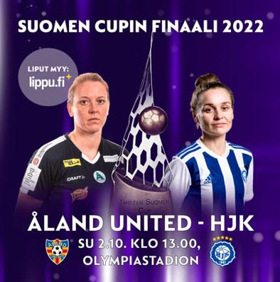 Jalkapallon naisten Suomen Cupin finaali Åland United - HJK pelataan sunnuntaina 2.10.2022 kello 13.00. JIM-kanava televisioi ottelun suorana lähetyksenä klo 12:45 alkaen.